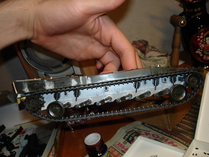 Про сам набор траков подытожу, что он точный, недорогой (брал на броне год назад за 250 рублей кажется) и правильно расчленен, но не для лентяев. После приобретения тамиевского лео2 попытаюсь его обуть этими же гусями, посмотрим как там сопрягутся звездочка и эта лента, потому что по идее она предназначена именно для тамии.