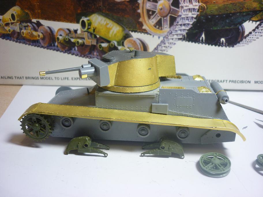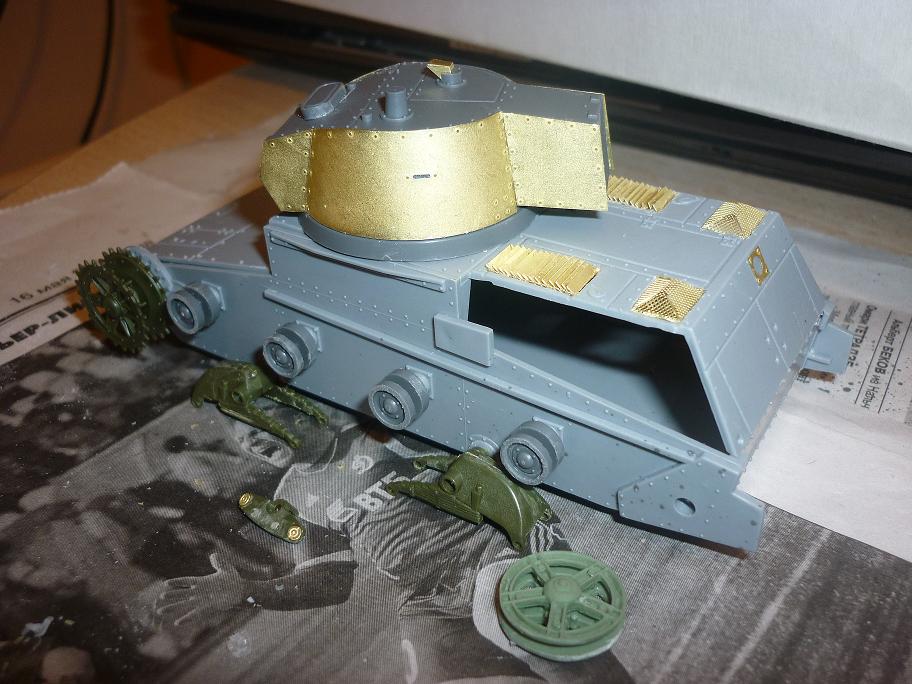 Для сборки приобрел Т-26 тойже Звезды (для ходовой) + набор от фирмы ЗИП (ленивиц), также взял травление от Абера (мне понравился, много всякой мелочи), заклепки от Мастерклуба (родные мелковаты оказались).