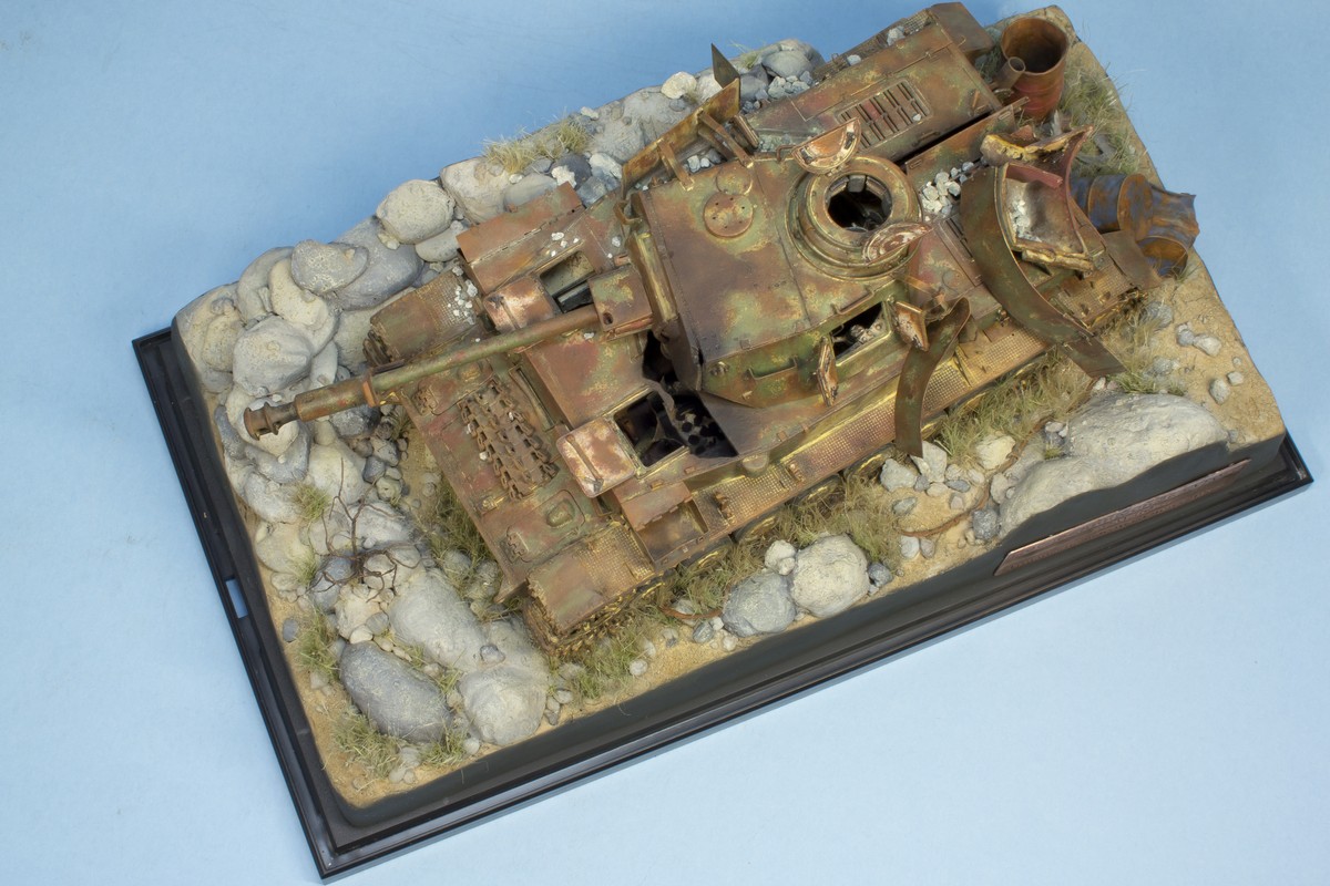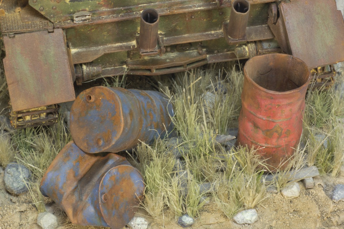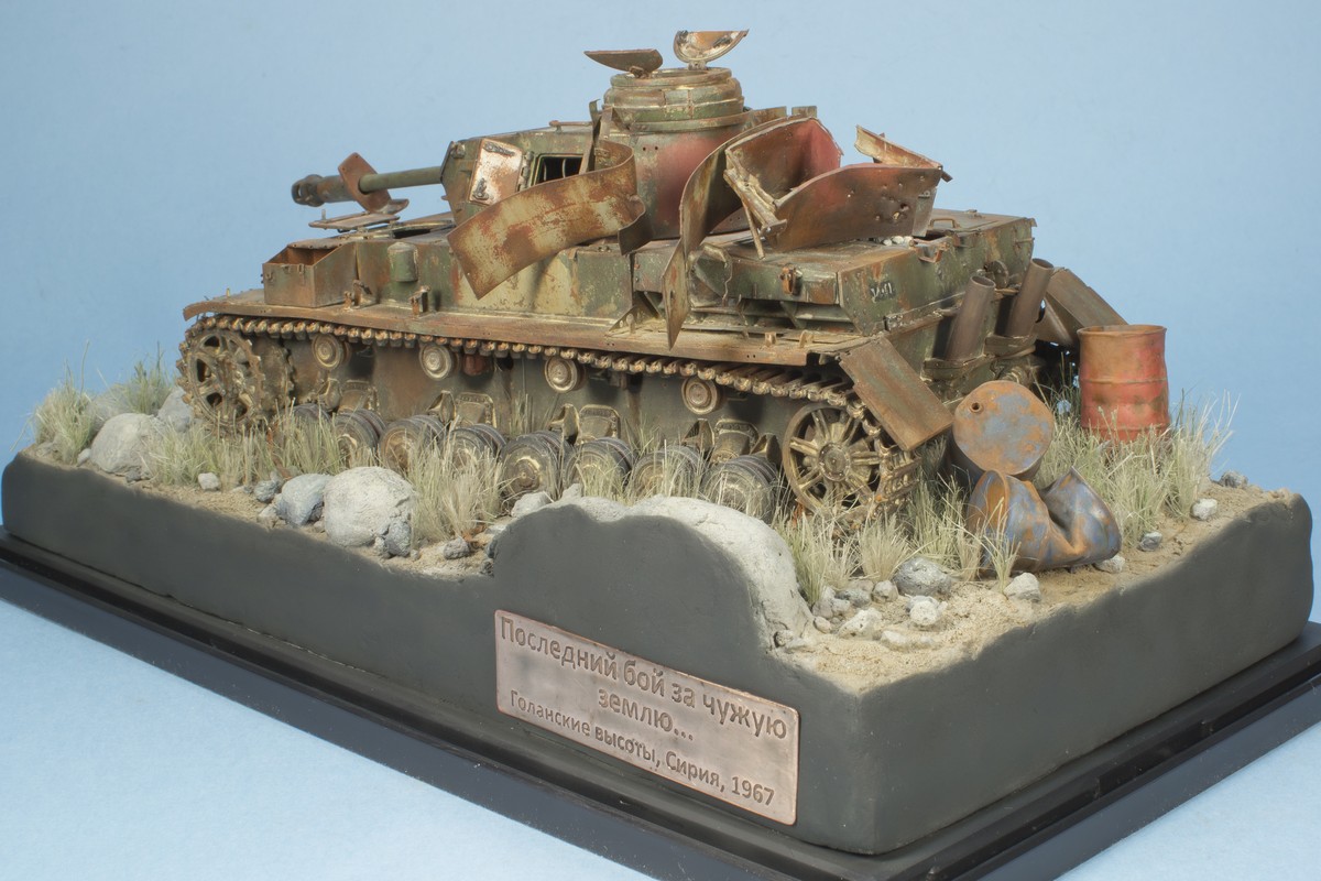 Точно не китайца и точно не старого солдата (немца, я правильно понял?). Танк делался на 70-е годы, когда на нем еще была зеленая окраска. А туристы там появились относительно недавно - это ведь до сих пор милитаризованная зона. Там и минные поля есть и современные укрепрайоны и войска... Т.е. китаец - это 2000-е, а сейчас эти танки куда более ржавые. Из окраски остался в основном грунт. Это про китайца. Про немца - еще более спорно появление солдата вермахта именно в Израиле с целью посетить танк на котором воевал. Да и старые они нынче – как и наши. Если и делать фигурку - то военный корреспондент или израильские солдаты, проезжавшие мимо и подошедшие посмотреть на диковинку.