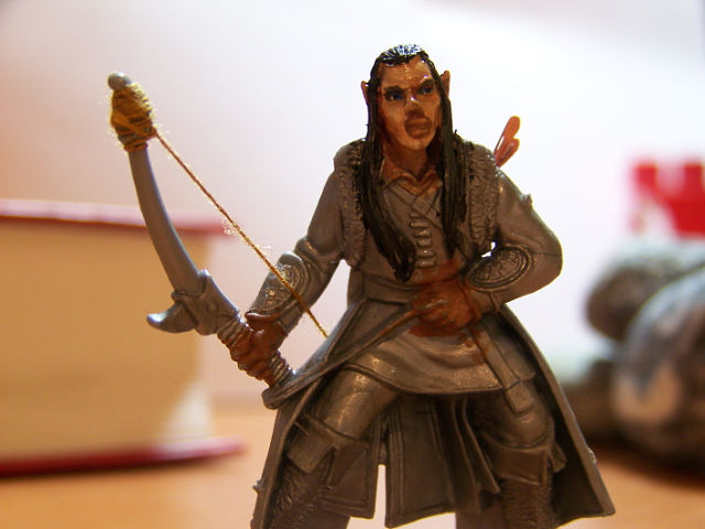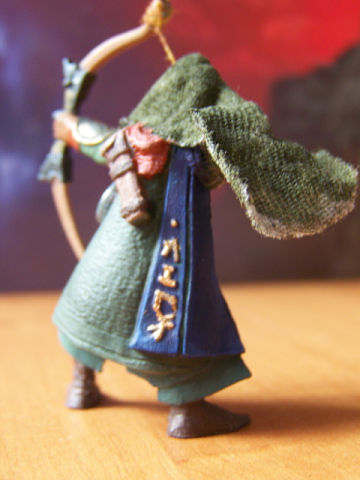 Работа над одним из эльфов почти завершена. Осталась мелочёвка. Не получилась фляжка, хотелось сделать её прозрачной, но вышла какая-то фигня. Наверное,надо было плясать от более светлых оттенков голубого, а не синего. Придется перекрашивать. Практически не видны потертости на плаще. Глаза у эльфа как не ровнял, а всё не то...