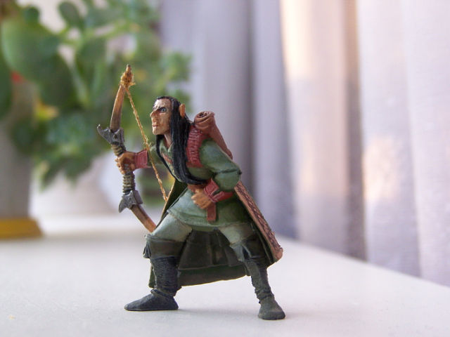 Закончена работа над очередным эльфом для виньетки. Напомню, что этого парня пришлось модернизировать. "Свернуть" голову, натянуть тетиву на лук. Есть и стрелы, но они пока ещё не заняли своё место в колчане. При покраске использованы масляные и акриловые краски.