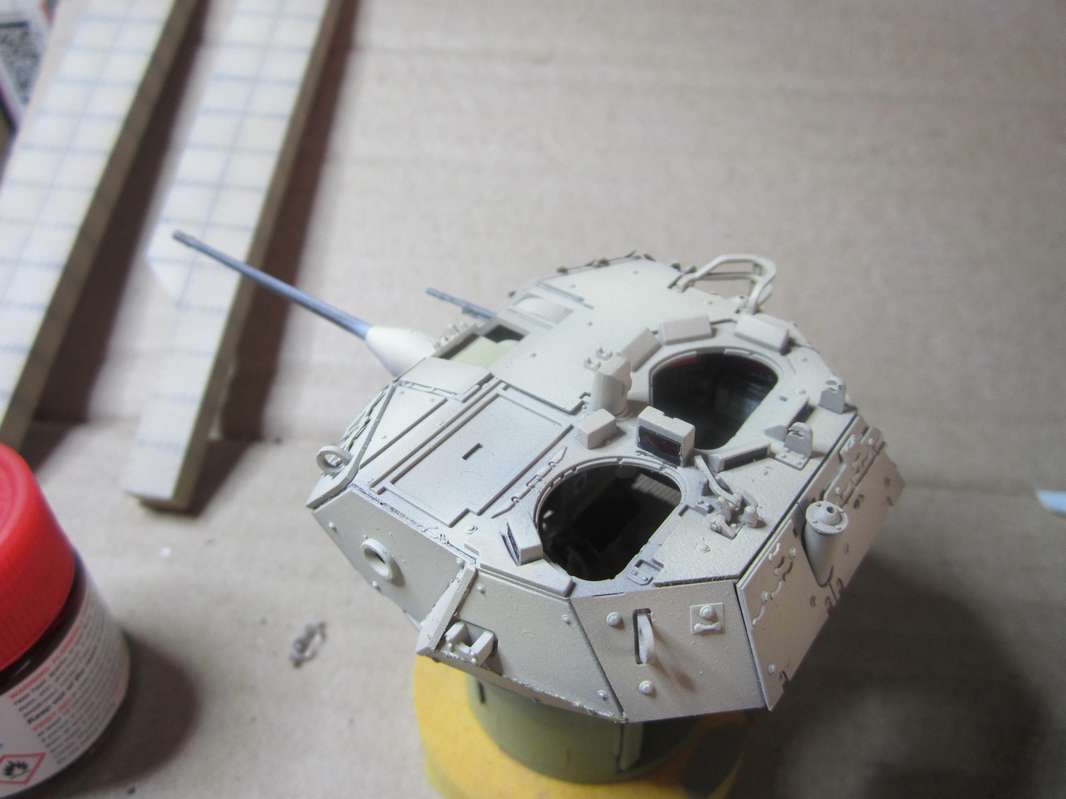 собрана частично башня со всей требухой. При установки крашенных перископов очень тугие посадочные мест под них, можно повредить покраску фасадного стекла.