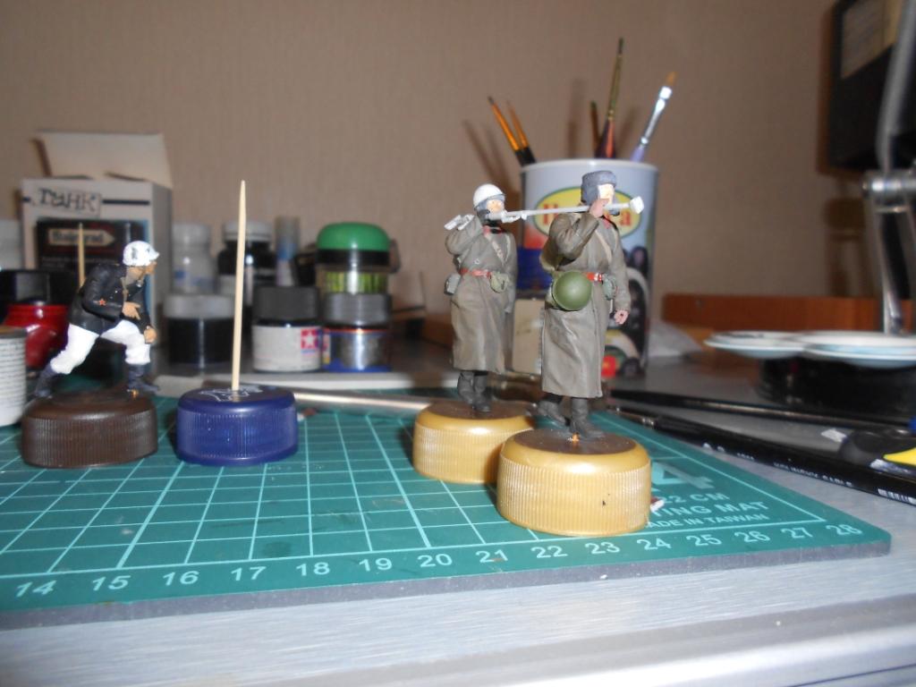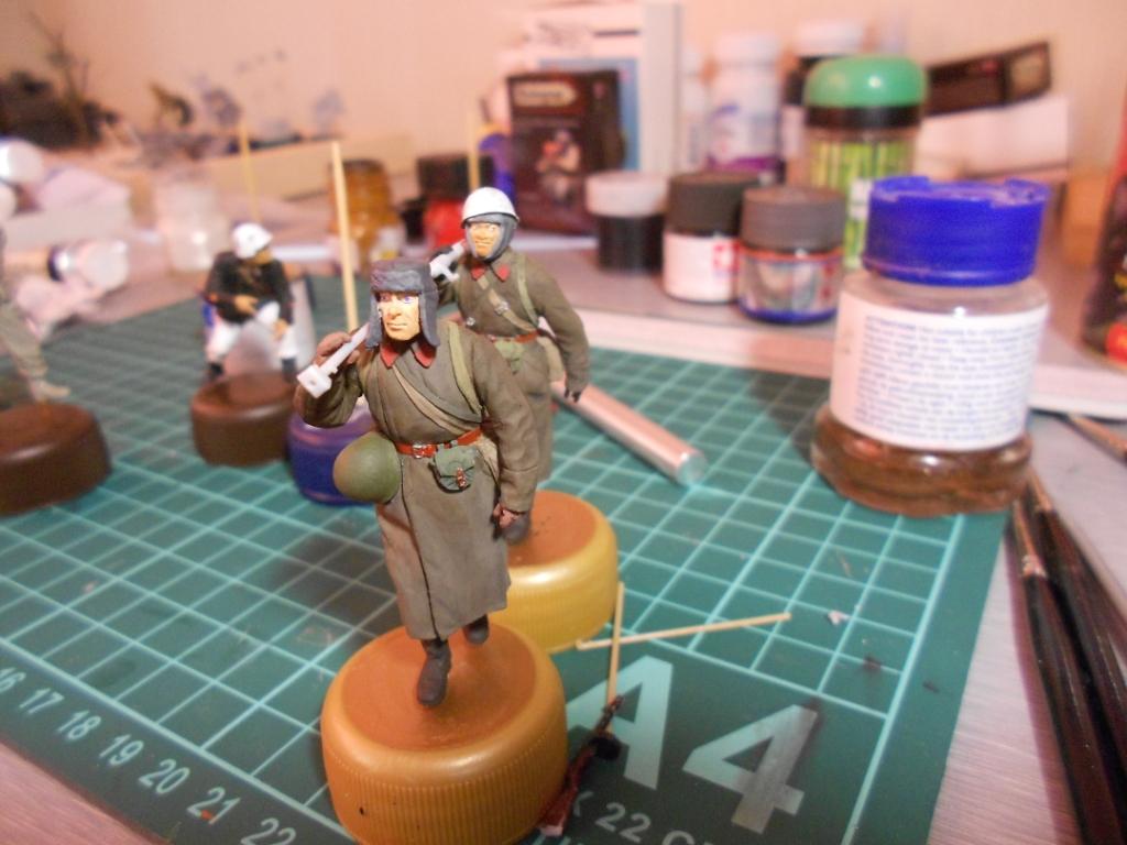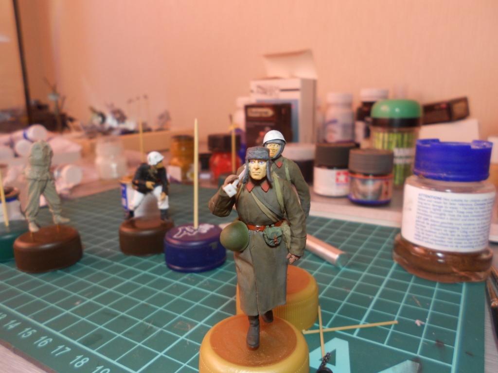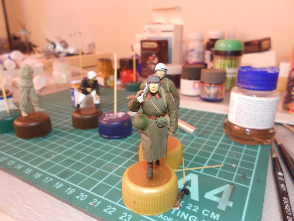 Мне роспись в основном нравится.. Но: братите внимание на глаза бойцов- как будто на выкате, в реальной жизни таких практически не встретишь. И второе- я бы побольше, или поотчетливее "запачкал" шинели и сапоги фигуркам. Ведь они не гуляют прямо так, с птр на плече, где то присел, где то лег, спрятался от вражеской очереди.. Поэтому шинель+сапоги сделать можно грязнее. Удачи вам! Жду диораму со Сталинградом (сам давно думаю о диораме со сталинградскими руинами)