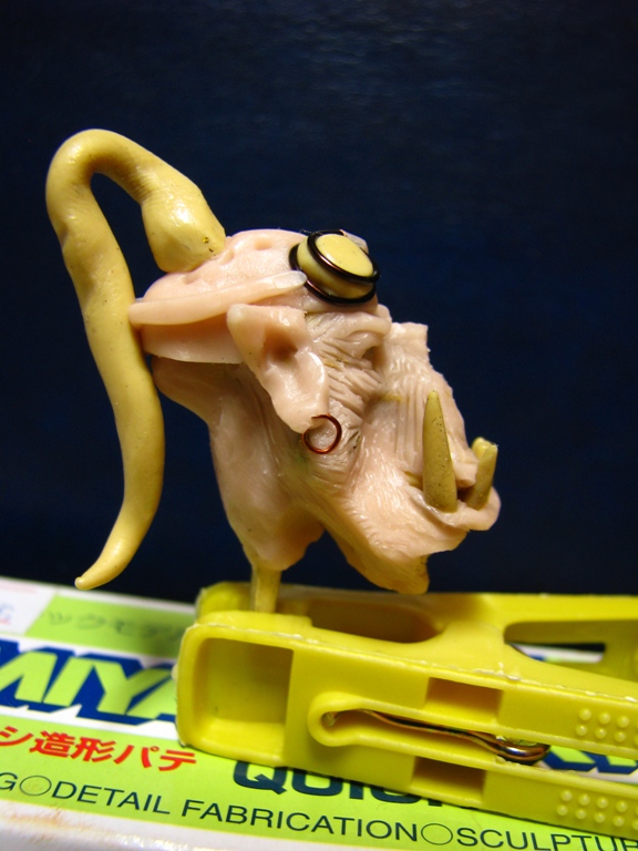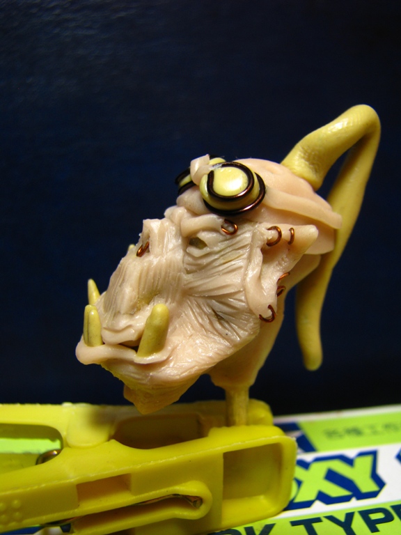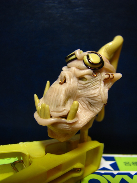 долепил гриву. добавил косички. немного черепов на прическе. лейкопластырь на морде. слева на скуле начал лепить шрамы- добавлю пару швов. стал напоминать главного злодея в гибсоновском апокалипсисе.