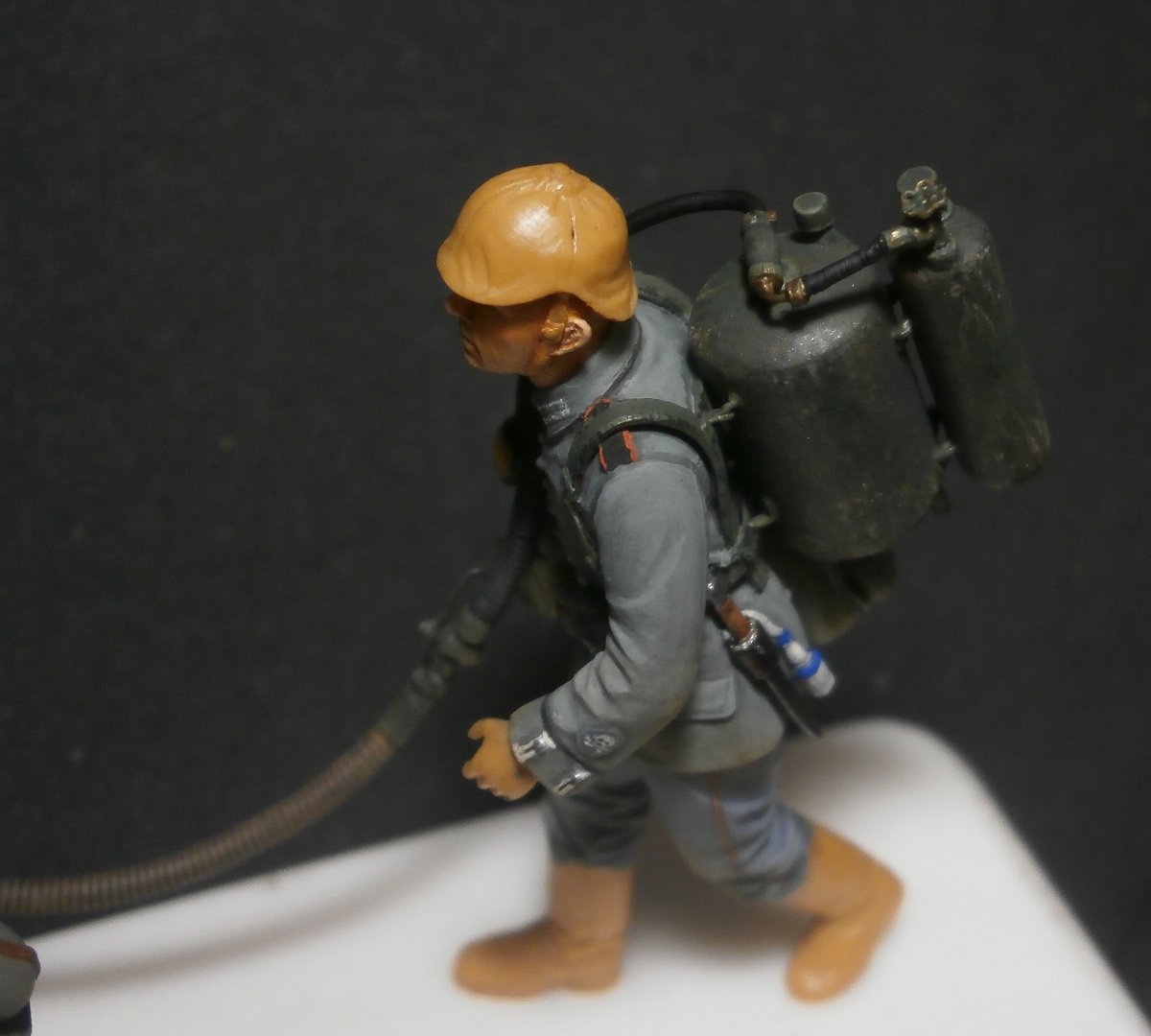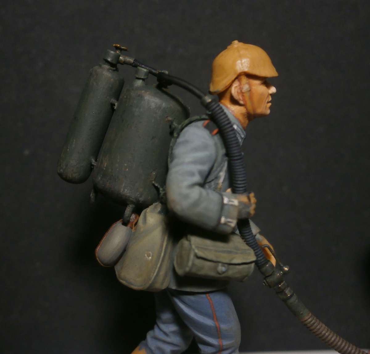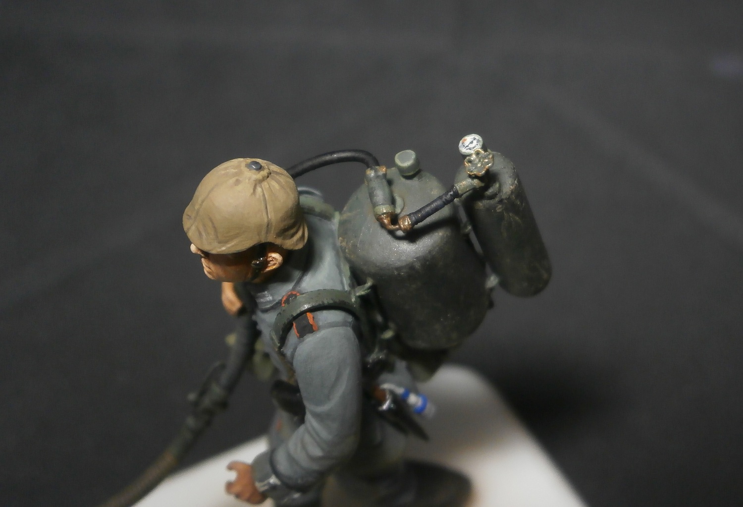 Черт его знает, но судя по схемам можно подумать что ранние шли без колпачков, там ясно показан просто манометр. К сожалению четких фоток именно ранних огнеметов я не нашел. В любом случае если делать колпачек, то это нужно весь узел переделывать, так что оставлю так