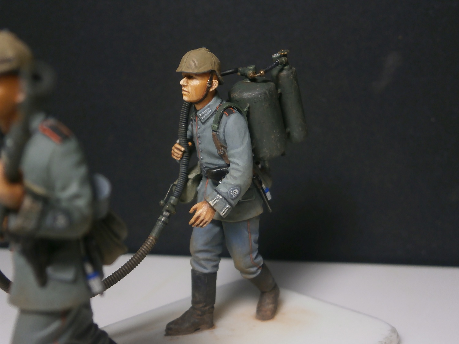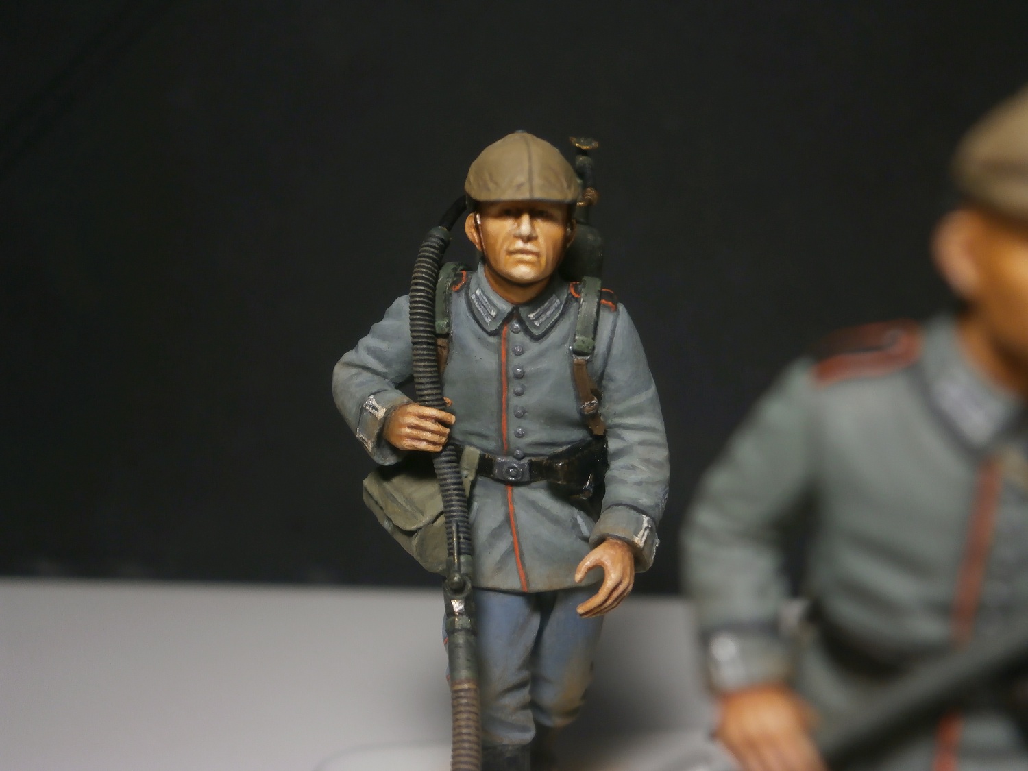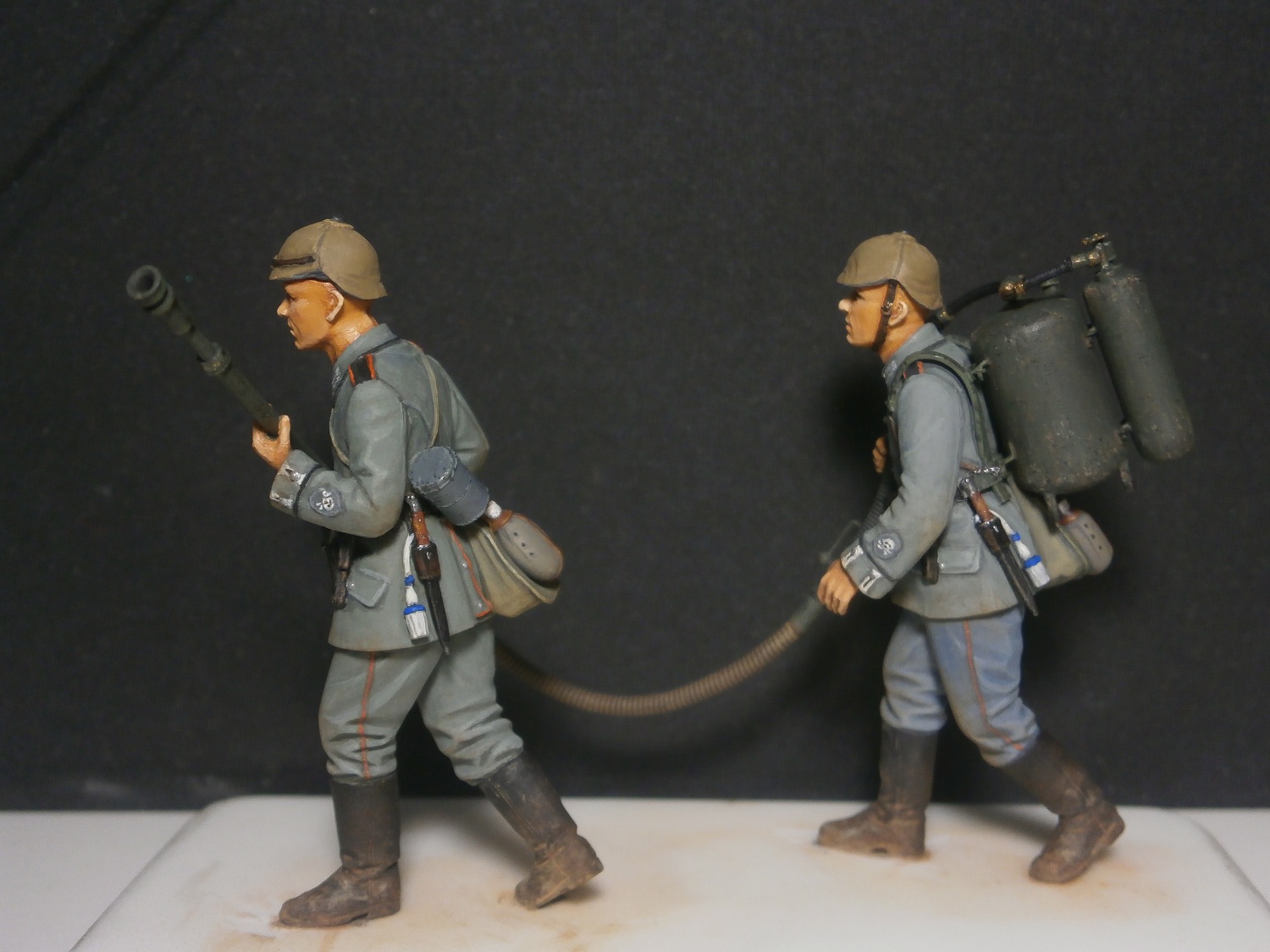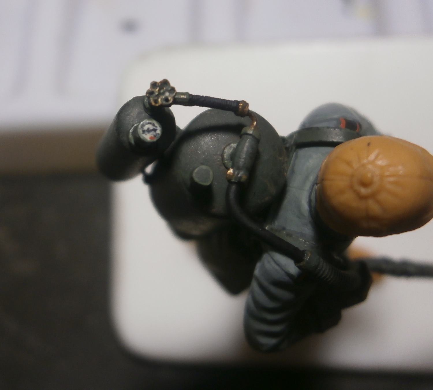 Неокрашенные рыжие "проплешины" пластика между светами и тенями на лицах и кистях рук смотрятся мягко говоря не очень.