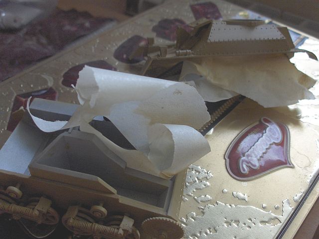 Вот и готово. Использовано кое-какое травление из запасов. Выбран (осторожно) сверлом бормашинки раструб глушителя. Естественно, верх и низ корпуса пока не склеены, просто сложены. Теперь можно обезжиривать в теплой фоде с Фейри, промывать в чистой теплой воде, и сушить перед грунтовкой. Не забудьте закрыть пробку слива в ванне, где это все удобно делать. Мало ли что...