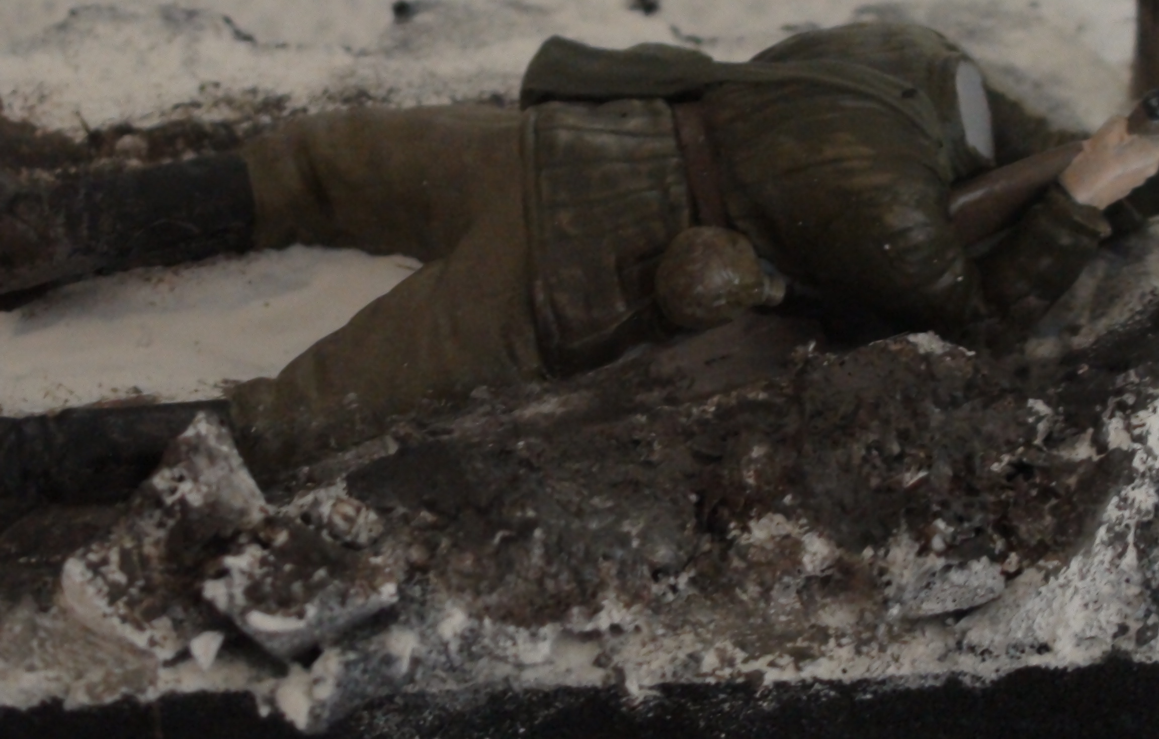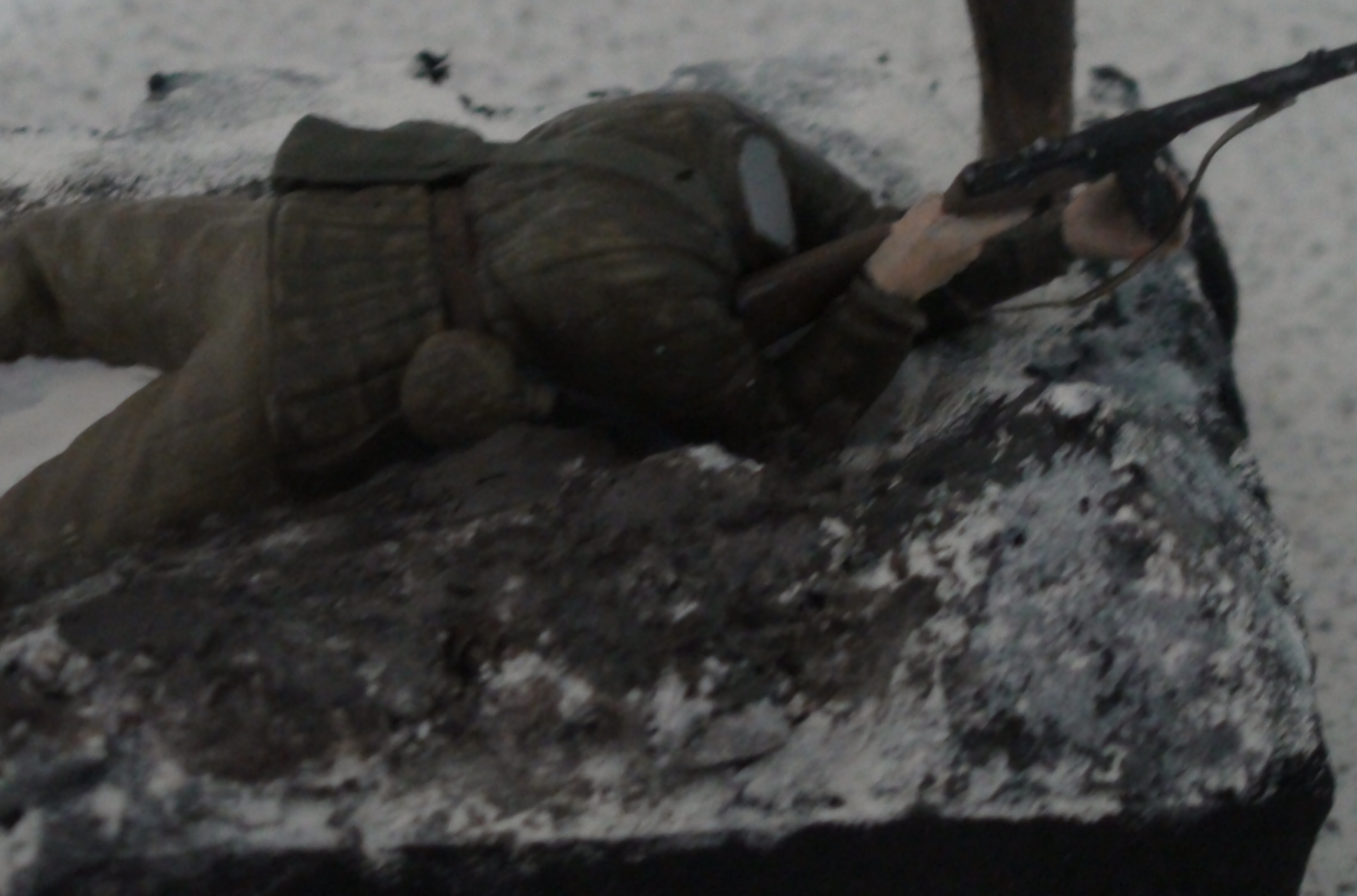 Впервые делаю что-то похожее на виньетку. Солдат из набора" Звезды" (истребители танков с собаками). Валенки заменены на сапоги. Основание - переделанное из коробки для сотового телефона, нанесена шпатлевка и немного вдавлена в нее фигурка.