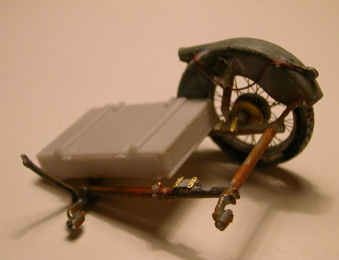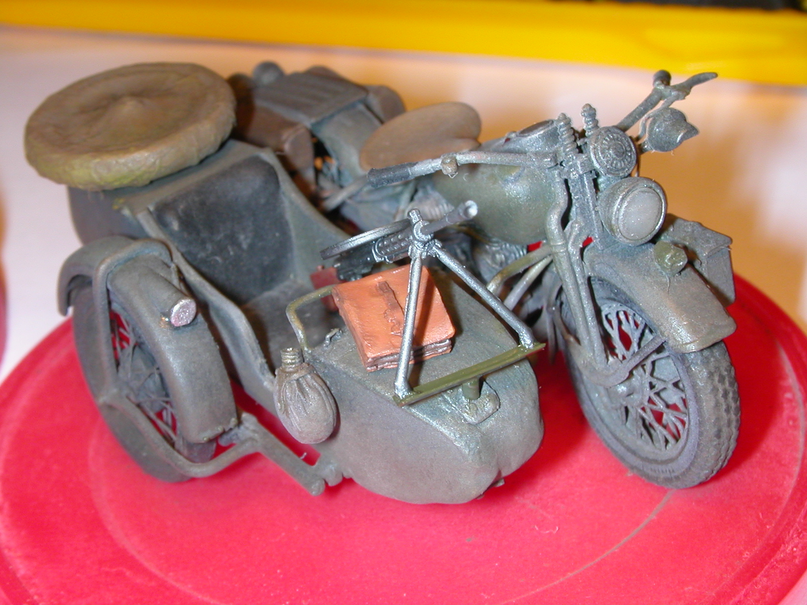 Наконец вышел на финишную прямую по...(не так давно размещал фото харли с коляской из сопровождения). Делаю расчет минометчиков на 2-х харлеях с колясками (на одной из которых будет располагаться 82-мм батальонный миномет обр. 1937 г.от "Сталинграда"). По штату и фотографиям как смог разобраться, один миномет обслуживали 4 чел. с сопровождением из 2-х мотоциклов на одном из которых как раз и располагался сабж. По коляске с минометом сделал заготовку, шасси от коляски Р-12(Звезда) с установленным на нем креплением для миномета и уложенным поверх рамы ящиком для 76мм снарядов от наших родных пушкарей - эт моя личная фантазия по украшению экстерьера, в ящике может быть размещен, как ЗИП, так и 4 мины(взят из набора бронебойщиков от миниарта, т.к. расчет миномета будет конверсирован из них). Уважаемые комрады, вопрос в целом прост! В интернете нашел всего 3 толковых фотографии по данному вопросу, о коляске с минометом… Хочется услышать предложения, советы по данному вопросу! Возможные способы крепления миномета, расположение зарядных ящиков и их крепления (предполагаю что часть из них перевозилась на 2-ом мотоцикле расчета). Тему взял неизбитую, ну уж очень хочется – привлекали меня всегда харли в советском колоре.