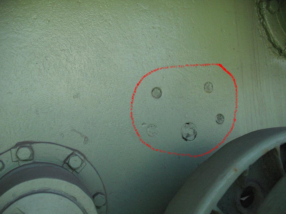 И как я понял никаких отверстей в бортовой броне в месте крепленния конусовидного крепления поддерживающего ролика не было?