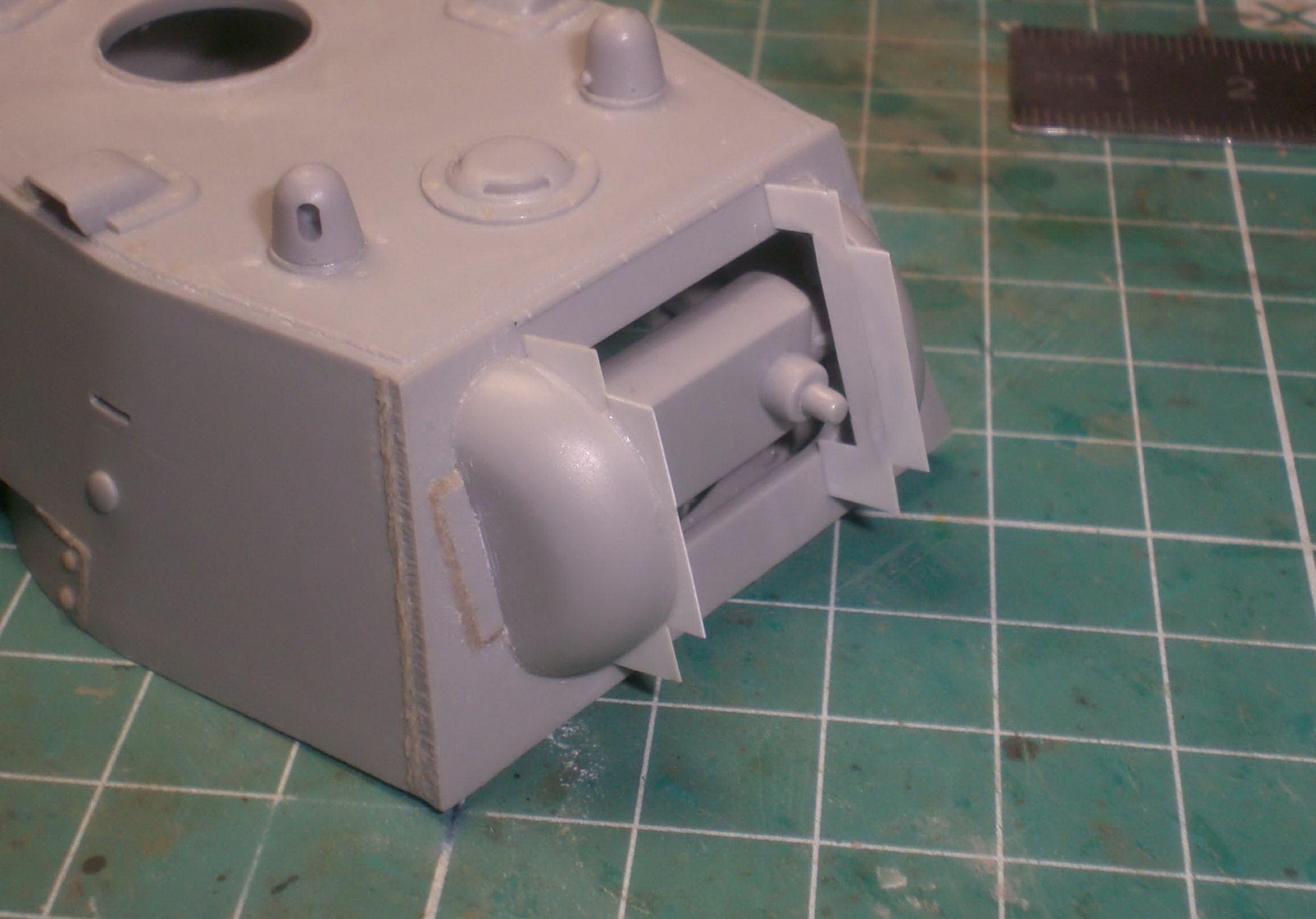 Между маской пушки и боковой бронировкой образовалась небольшая щель, пришлось наращивать листовым пластиком.