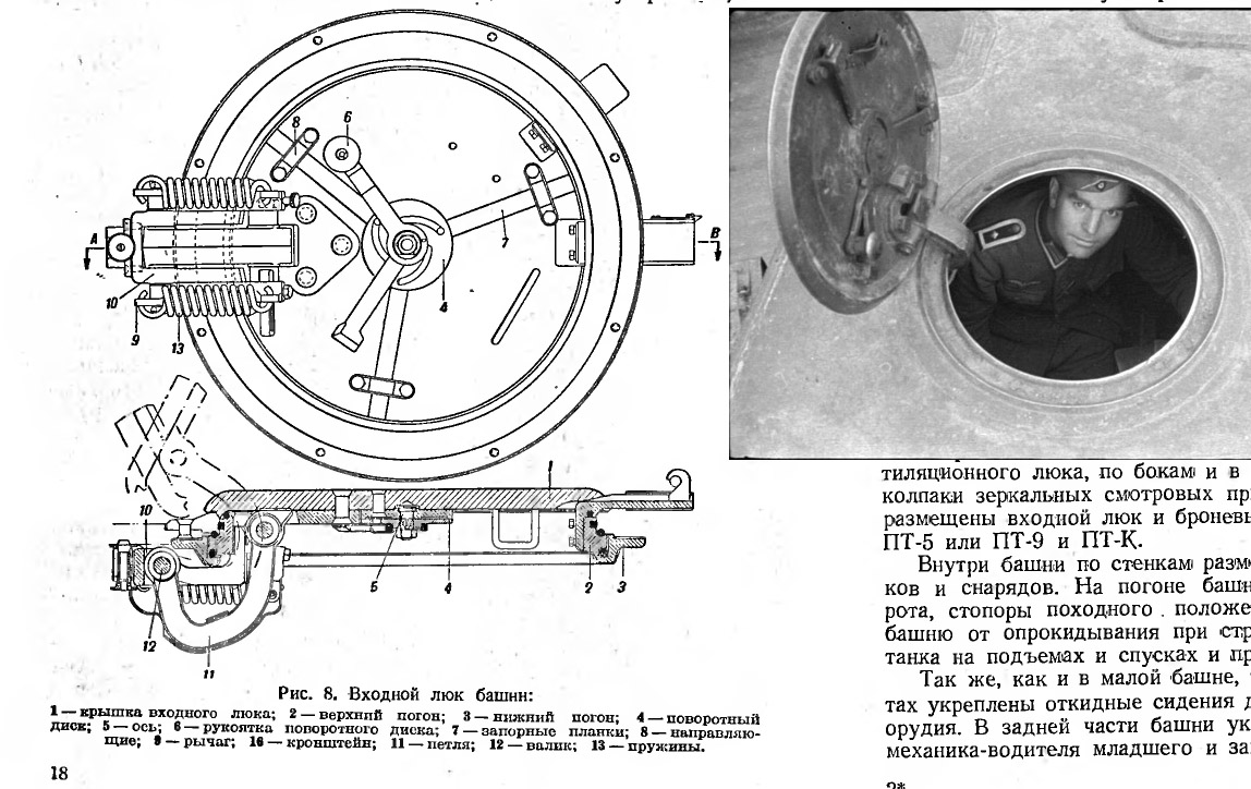 Но все-равно вопрос остался открытым. на приведенных фото изображен люк механика-водителя, а на чертеже люк в башне. И как видно они несколько отличаются. Особенно интересен узел с пружинами.