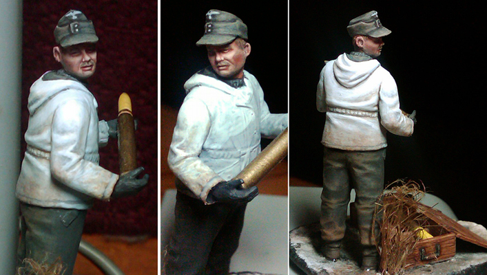 ХомяК, мне очень нравится! Может стоит все-таки (Демченко уже намекал!) перейти на смоляные фигурки и аксессуары?! Уровень исходных материалов не дотягивают до уровня росписи! Стоит, наверное, что-то выбрать из доступного по почте, типа ТАНК и 5,45. Там и ящики и снаряды и оружие достойно в смоле сделаны.