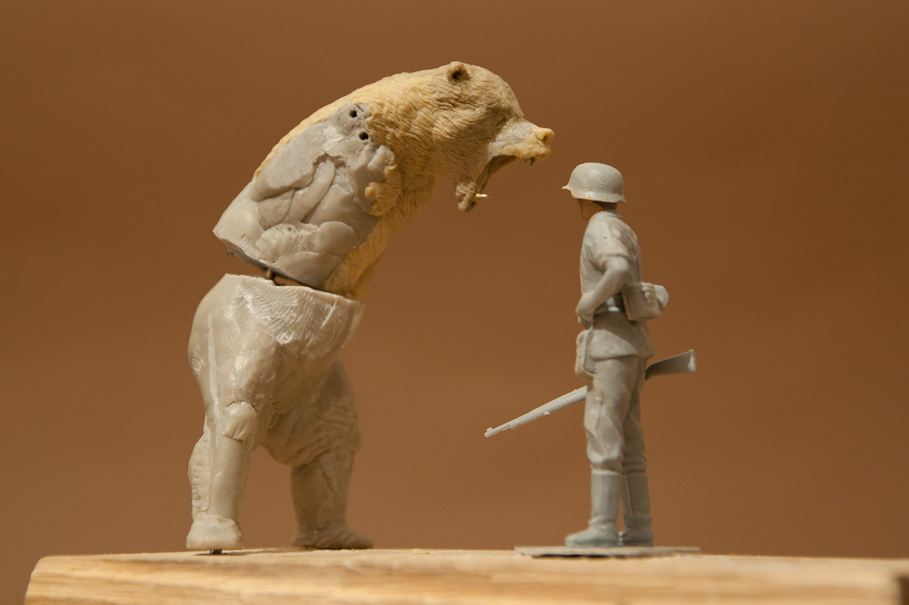 Остофонарела мне лепка ровно на два года, день день. Только что по exif увидел! Читал книгу "Гризли", Кервуда, включаю телевизер, а там фильм "На грани" с Энтони Хопкинсом, Алеком Болдуином и медведем Бартом в главных ролях. Очень меня впечатлил медведь! Это великолепнейшее животное, идеальное, любоваться можно бесконечно. Вот и решил себе слепить мишку в масштабе 1/35.