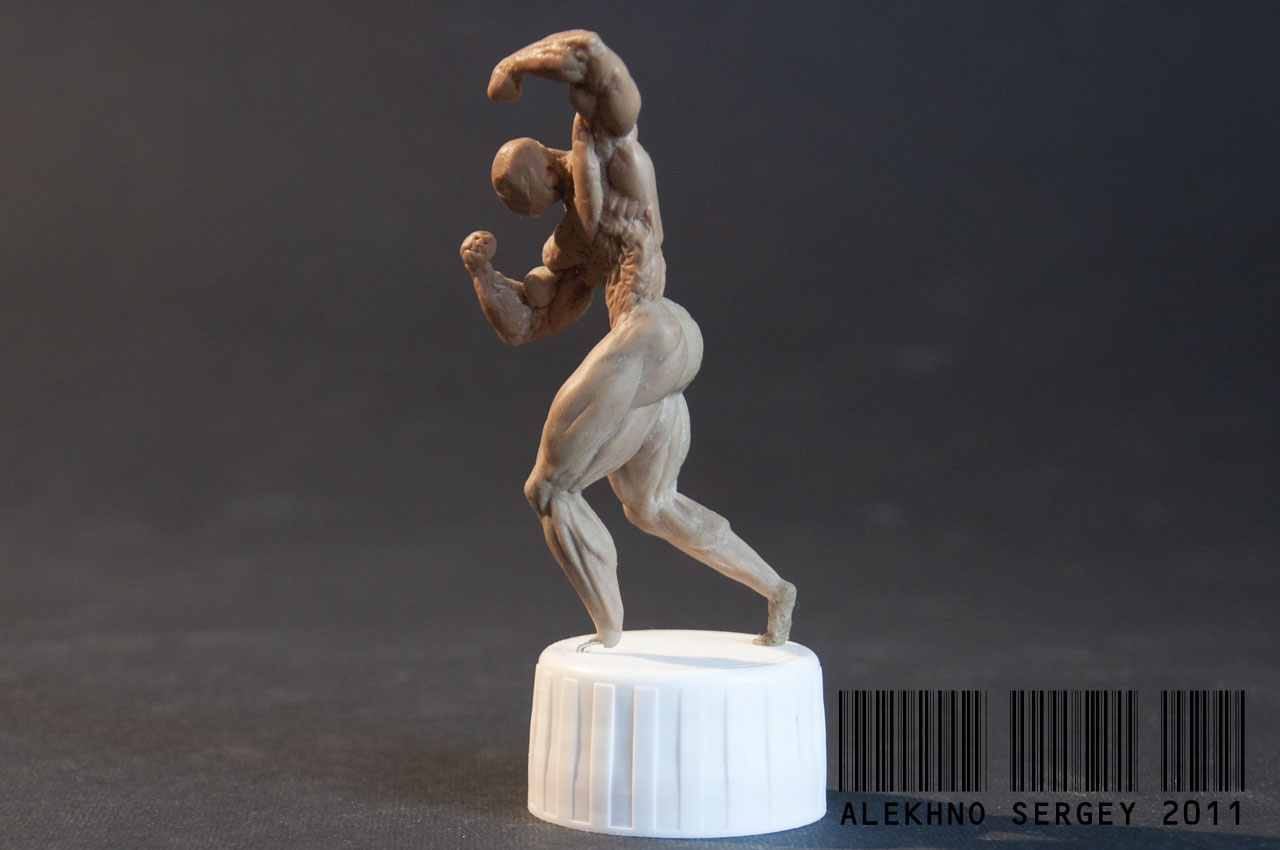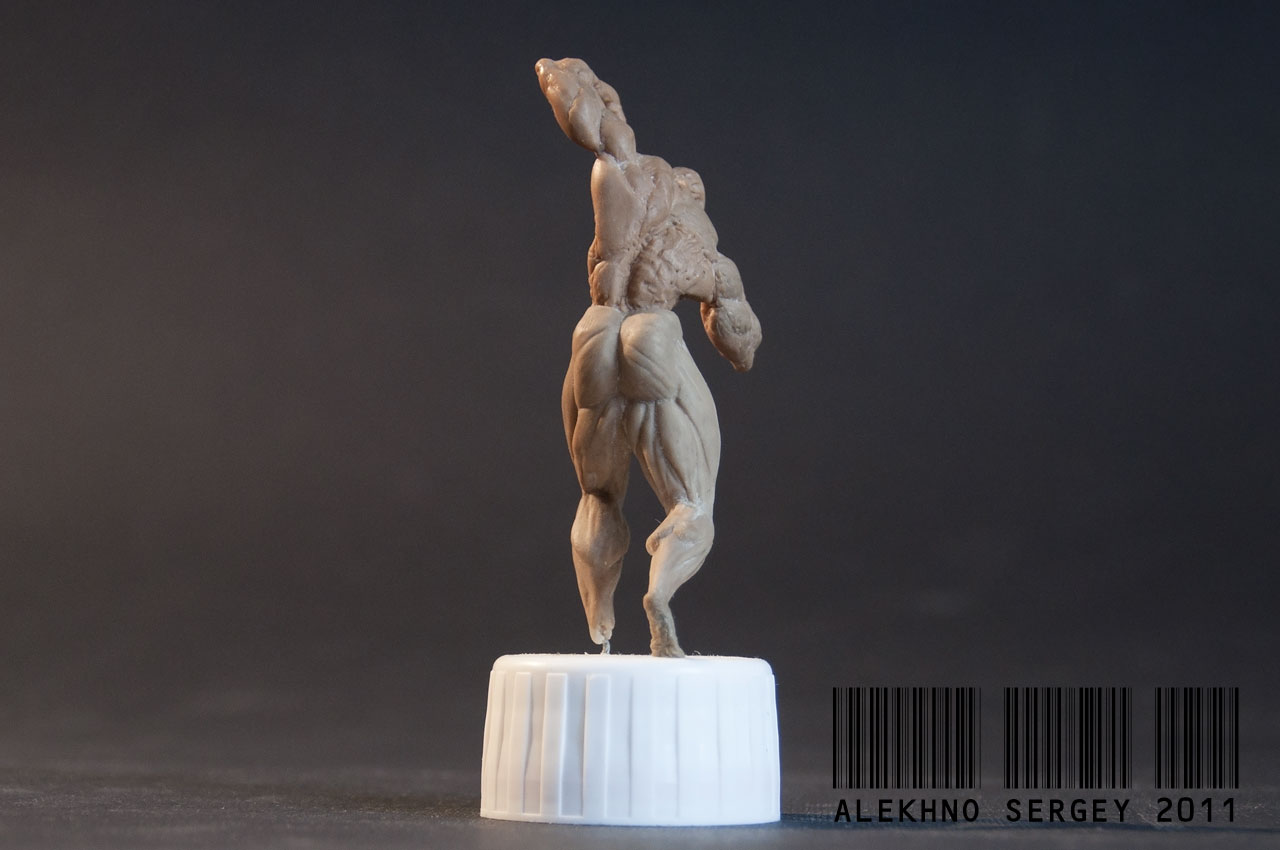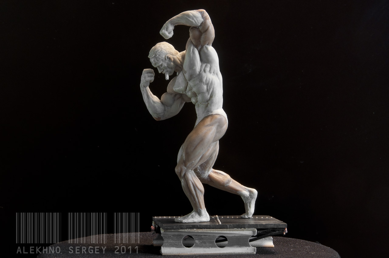 Оговорюсь. Лепил собирательный образ, то есть тело не Арнольда (это ведь тоже портретка), в нем группы мышц от многих великих спортсменов: Ятса, Вольфа, Леврона... Эдакий собирательный образ вида спорта. Ну и вот, что в итоге получилось (90мм):