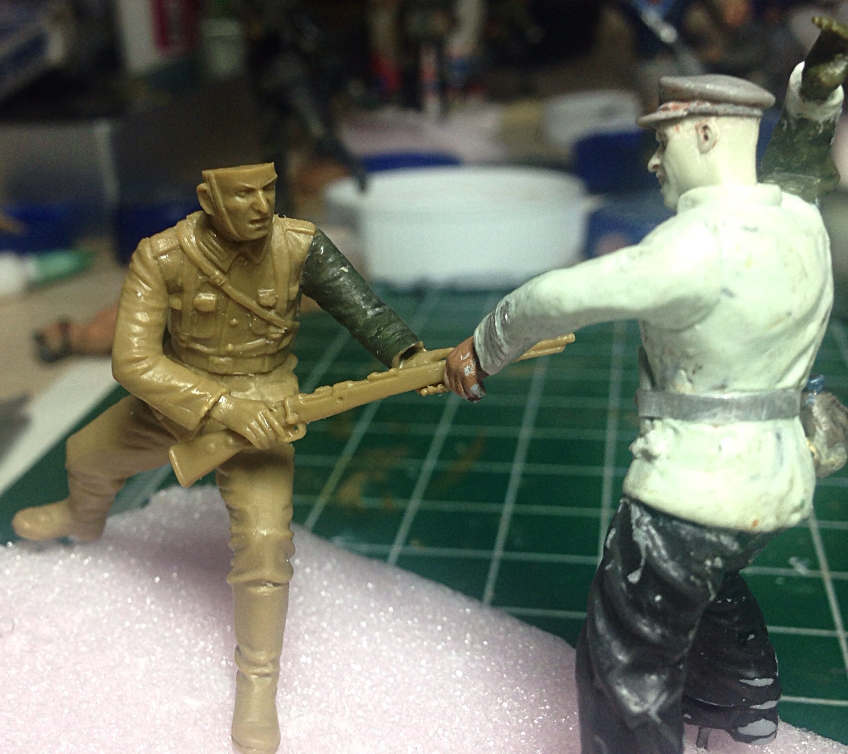 Будет вот так.. Немец из набора Мастер Бокс. Вообще готовлю большую работу на тему Сталинграда, но в связи с многочисленными переездами- создание диорамы откладывается на неопределенный срок.. А жаль:-/