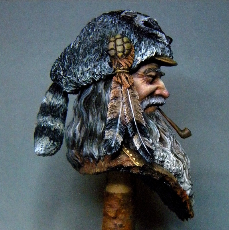Это вполне может быть шапка из шкуры скунса. Так даже интереснее,чем банальный енот. Такое вполне в духе этого персонажа