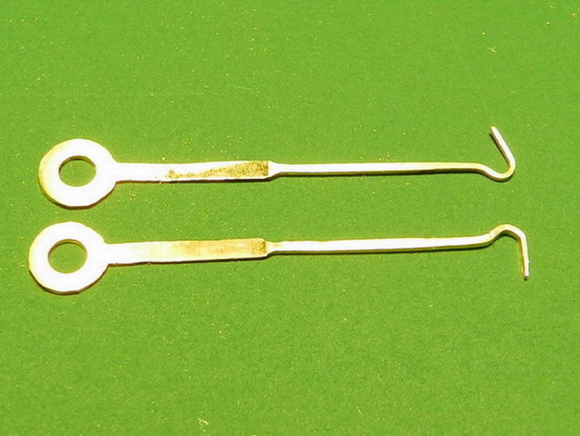 Сделал из лптуни толщиной 0,5 мм. закрутни с воронками. Они соединяют ось с вагой.