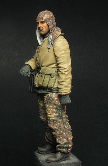 ну пыхнуть фигурку лаком это,видимо,проблемно,т.к.разные участки имеют разную степень блеска (лицу допустим легкий глянец необходим,ремни тоже глянцевые)
