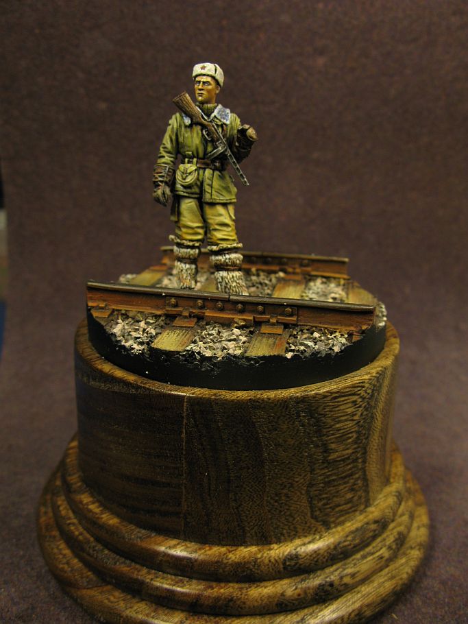 P.S. Для таких маленьких размеров изделия, как подставка под ВИМ, породы дерева с крупным рисунком не годятся - смотрится плохо, "разбито", теряется форма, в общем не эстетично, да и по отношению к такой маленькой фигурке, как 1/35, природный рисунок дерева выглядит очень грубо.