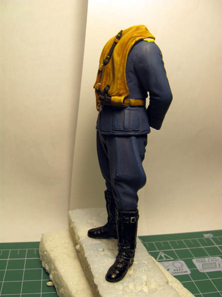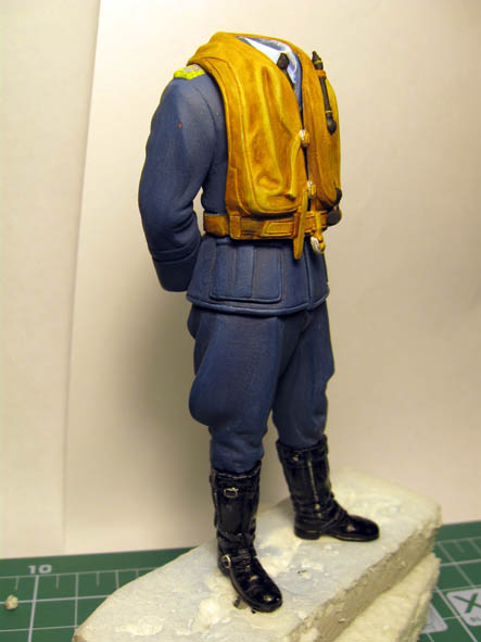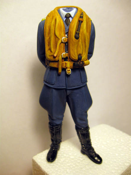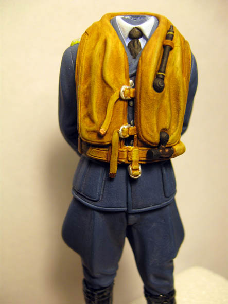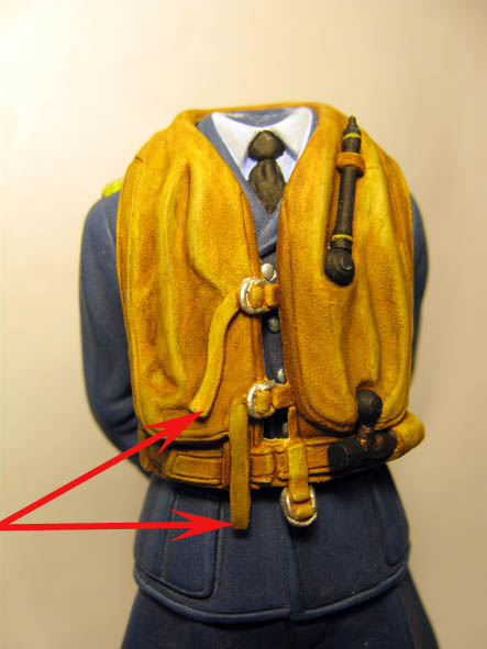 По высланной ссылке Константина- видно, что баллон сжатого газа, для накачивания жилета - был не чёрного цвета, а имел бронзовый цвет. Так и сделал, добавил ещё сверху бронзы чёрное тонирование.