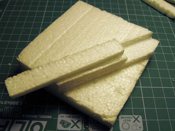 Берём листовой пенопласт (в данном случае- уплотнительные перегородки, из коробки с бытовой техники).