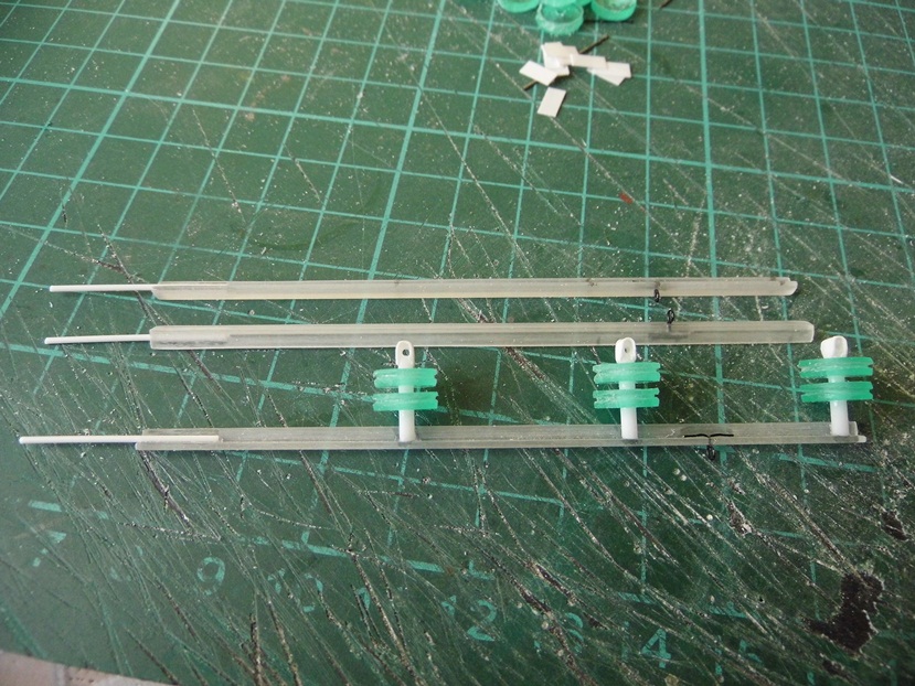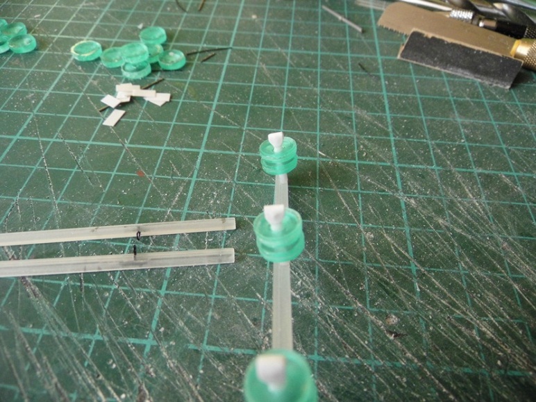 Для изготовления уголков использовал вот такой прозрачный профиль от Тамии. Под сечение 65мм подходит уголок в масштабе 2мм, а у меня 3. Сточил до необходимого размера вот и все... (а у Тамии таких уголков 2 мм помоему нет).