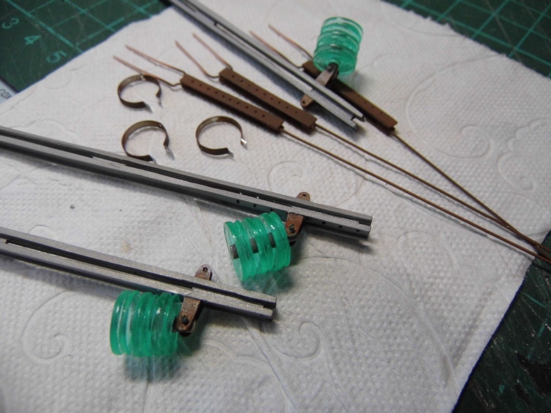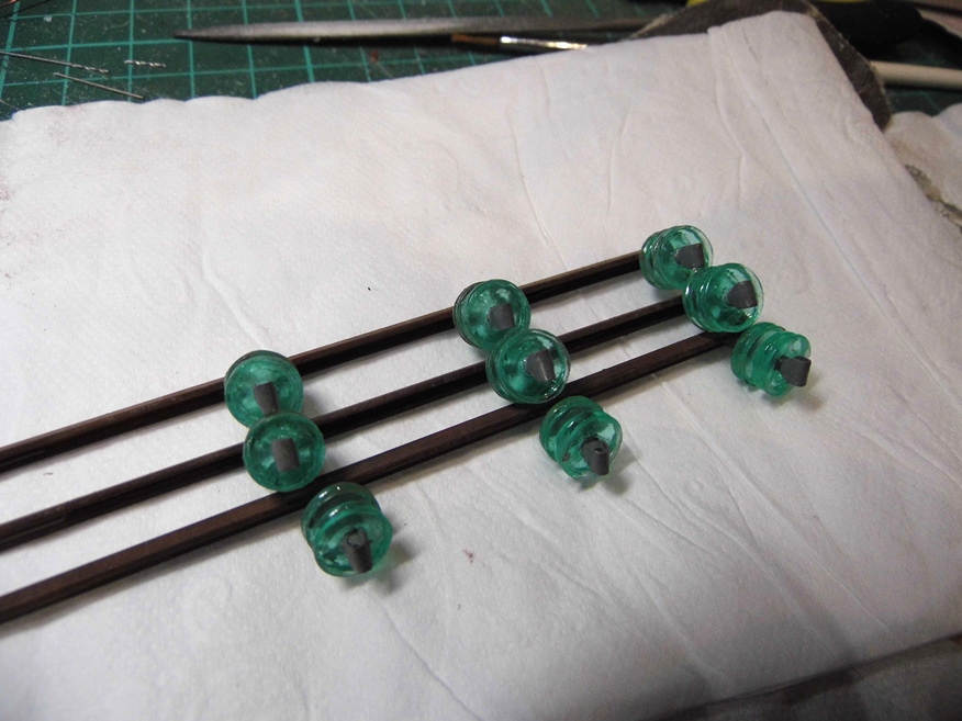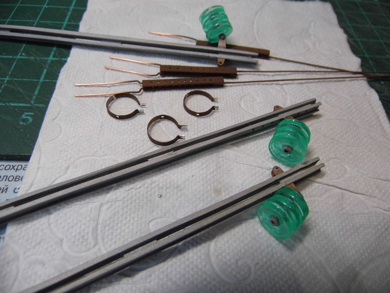 Покрасил кистью акрилом Model Air. Натер ржавым и черным пигментами. Изоляторы покрыл слоем глянцевого акрилового лака "Сонет".