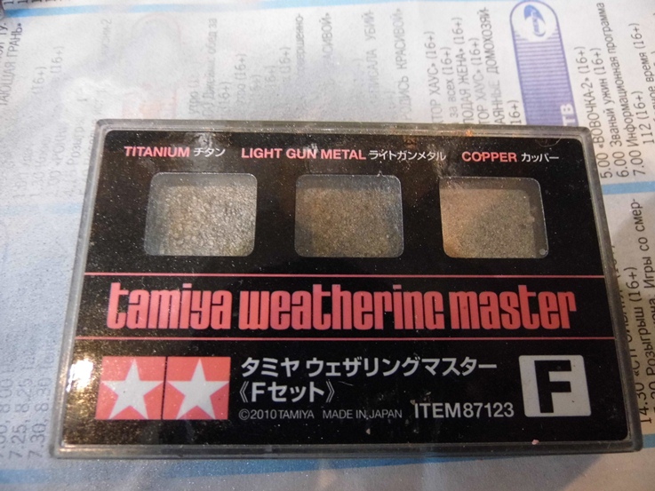 Обработал пигментом и снова покрасил. Потом набор пигментов. Фиксировал на растворитель. После чего матовый лак из баллона от Тамии.