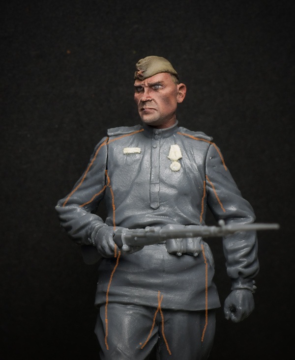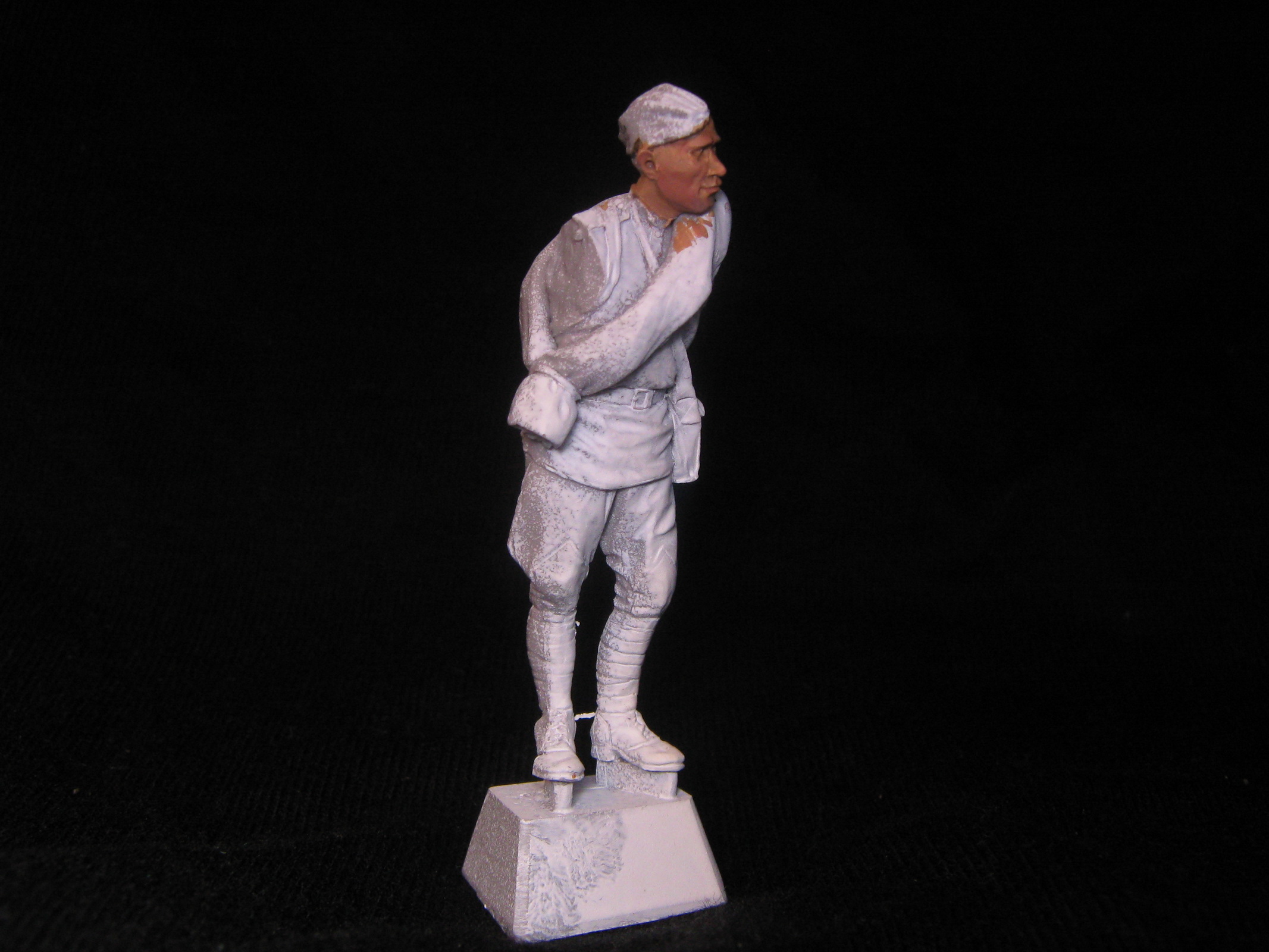 Уже десятки раз писали - ну не смотрятся "живые" (если можно так выразиться) фигурки когда их используют в качестве убитых - слишком ненатурально смотрятся. Тут или использовать уже "фирменных покойничков", или самому лепить или уж на крайний случай присыпать землей (кирпичами и т.д.) процентов на 75 и больше. И Ваша работа, Михаил лишнее тому подтверждение.