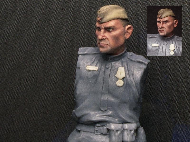 Константин Капитонов, ну дорабатыватся фигурка ещё будет и жилет в том числе,а вот голова это да,но там ничего не поделать,фигурка 54мм подобрать замену было бы трудновато,а переделать я был не в состоянии,т.к.скульптор из меня не очень,так что попробую окраской ещё поизголятся,хотя вряд ли что выйдет,уже устал от этой фигурки.