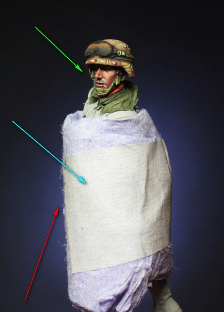 Опустите лампу над фигуркой на расстоянии 3-4см. Попросите брата, сестру, маму, папу, жену посветить фонариком на задний фон. Если никого нет, положите фонарик на стол, подложите что-либо под него и наведите на задний фон. Сфотографируйте при настройках - выдержка 1\40, F9.0, ISO Auto.