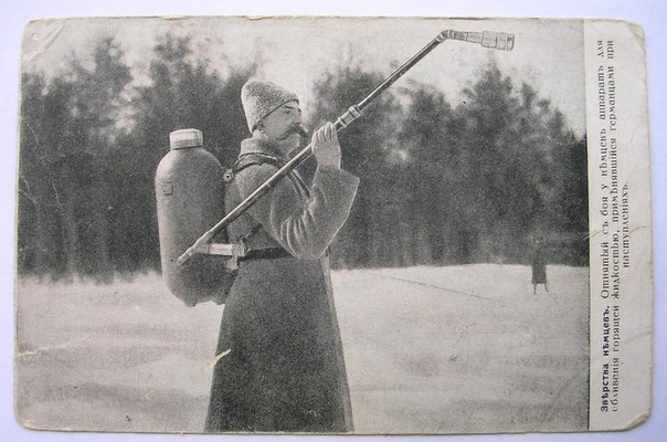 Открытка (!) с русским трофейщиком-огнеметчиком - интересно, что у него за аппарат - вроде не те, что тут были?