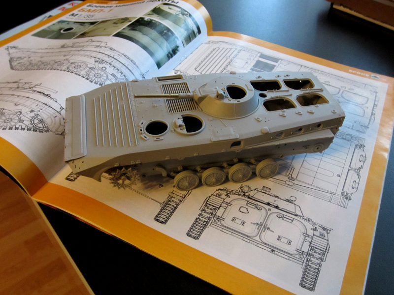 Дорвался до трумповской БМП-1...ооооочень достойная модель.Прямотаки ложиться в чертежи в М-Хобби как родная (возможно по ним и делали) Есть конечно к чему руку приложить, так как присутствуют не точности,упрощения (что все же несколько странно для нынешних производителей) но они легко устранимы. Готовлю модель к лайт-запилу