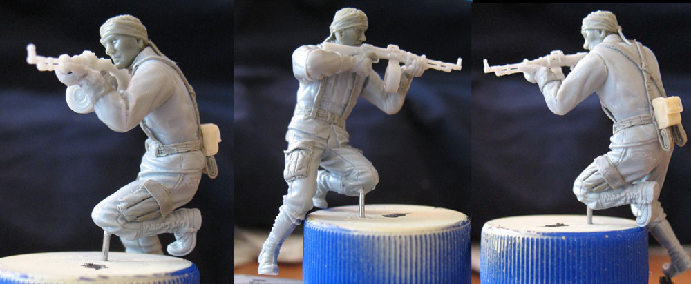 Вот, что собрал из разных частей от фигурок. Боец MACV-SOG, Вьетнам. Процент готовности - 40. Пока вроде эскиза. Добавится снаряга, удалятся швы, доработается РПД, прорежу протектор в "джанглах".