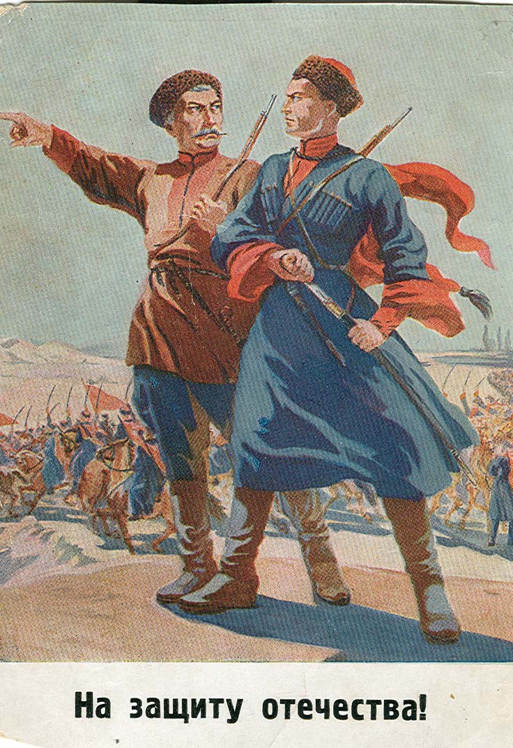 Возможно у советских "казаков" и было что-то подобное, но вообще-то кавказское кожаное снаряжение (сбруя лошадей, пояса, ножны шашек и кинжалов, и т.д.) всегда традиционно делались только из чёрной кожи.
