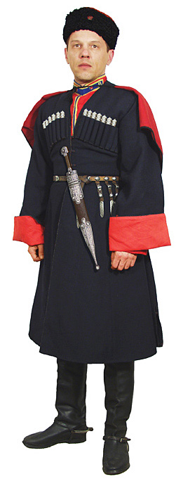 Все же остальные справочники показывают казаков в парадной форме (а здесь именно парадная) либо в чёрных, либо в тёмно-синих черкесках.