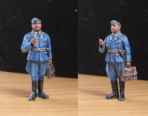 В принципе очень хорошо, но если есть возможность и желание - фигурки "голубых" лучше перекрасить. Не было у немцев формы такого оттенка, как почему-то некоторые современные иллюстраторы любят рисовать, тут лучше на фото оригинальных вещей ориентироваться. Стандартный цвет униформы люфтвафе - СИНИЙ с серым оттенком, или серый с синим оттенком, но никак не такой бешеный небесный цвет. Вот ссылка на фото оригинальных предметов - изучайте (внизу страницы смотрите).