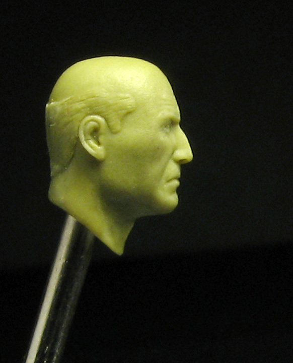 А вот складки на бутсах я бы переделал. Не похожи. Носки ботинок и сапог всегда и у всех сминаются одинаково. Если у Вас где-нибудь завалялись старые разношенные шузы, взгляните на них. Это то что надо. И глазки бы ему децл разрезать ближе к переносице. Будет напряженный прищур, а покамест они просто маленькие. Впрочем, все это кому надо и на отливках поправит, не беда. Идеал недостижим и необязателен.