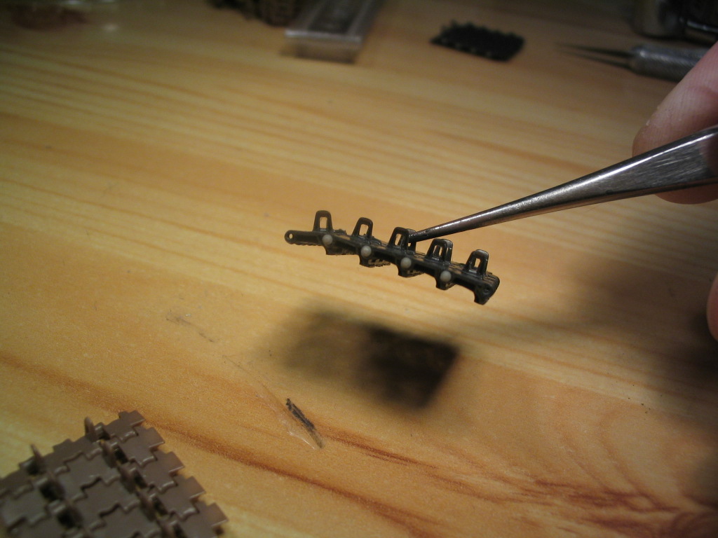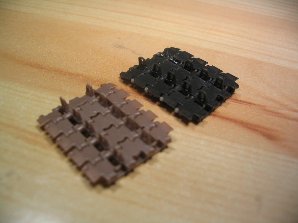 И так звено тpаков Modelkasten - коричневые, и звено MasterClub - чёрные уложены на стол.