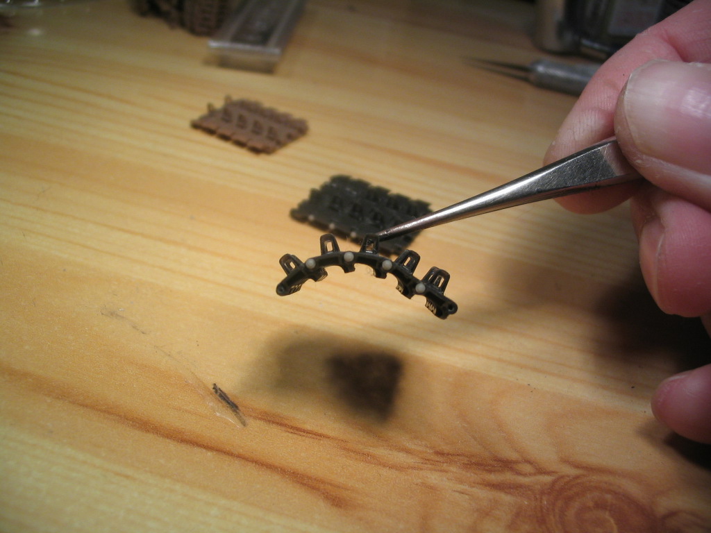 Теперь взяв пинцетом за центральный трак приподнял оба. Modelkasten великолепно под собственной тяжестью максимально выгнулся!