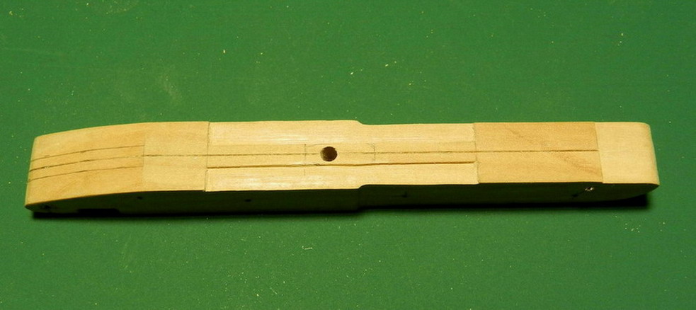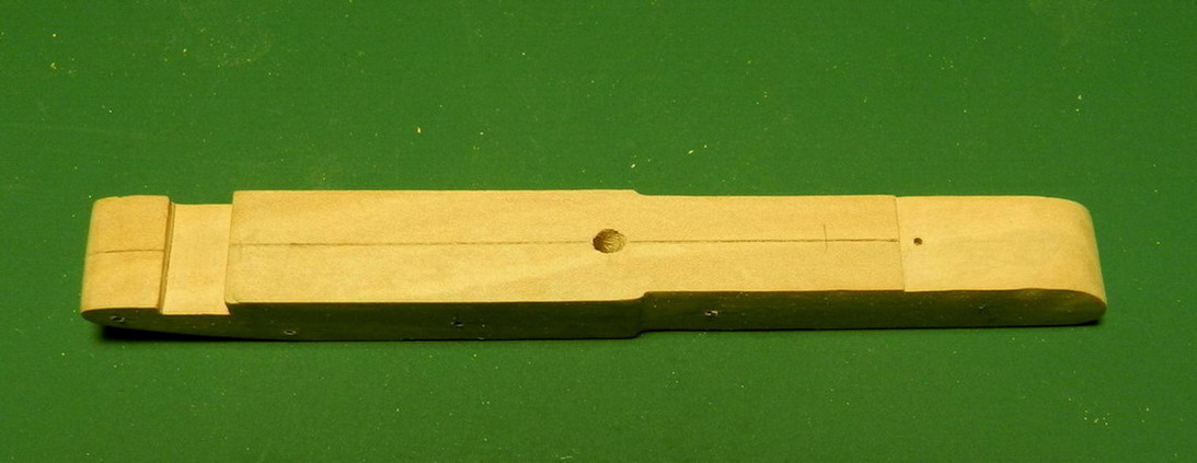 А теперь продолжаю "бой". Возвращаюсь опять к лафетам. Теперь на очереди лафет для 24 фнт. осадной пушки обр.1834 г.Будет ставиться на передок. Пришлось вернуться к любимому мной дереву. Ибо нет полистирола таких толщин, ди морока сним ещё та. Для начала показываю только деревянные части лафета. Короткие боковые станины с разметкой отверстий под болты крепления и вырезами под цапфы и ось.