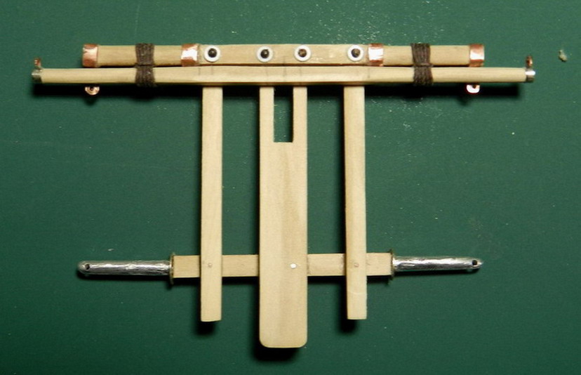 Из латуни и медной проволоки спаял тяги (закрутни) от оси к неподвижной ваге.