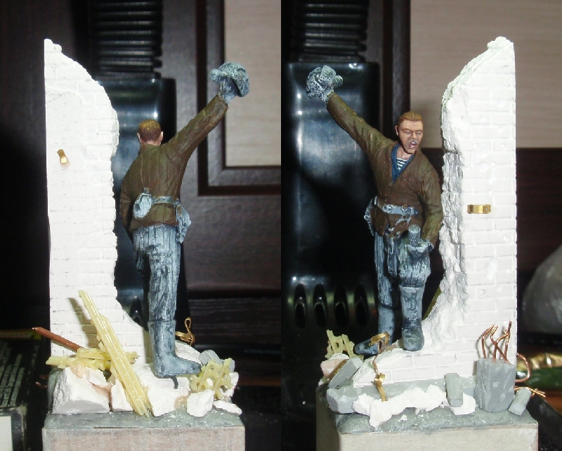 Симпотишная подставочка,и руины вроде ничего,мусора побольше.За фигуркой пока наблюдаю,сделай как на фото прищур.