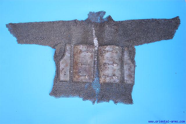 Предполагают, что это трофей шведской армии, захваченный под Нарвой в 1700 г., т. е получается, что юшман русский или турецкого производства, но использовался русскими воинами.