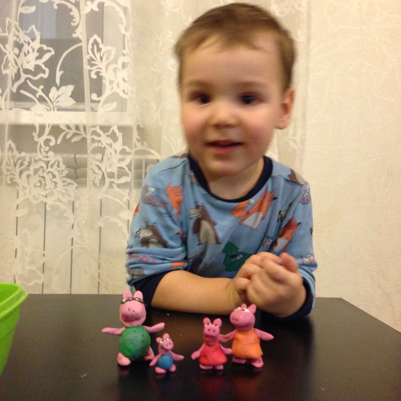 Прошу прощения за оффтоп. Не удержался. Скоро дедушкины солдаты будут нервно курить в сторонке. Внук Максим (2 года 3 месяца) и его "Хрю-Хрю". Воял часа 3. Оторвать не могли. Теперь всё в пластилине...