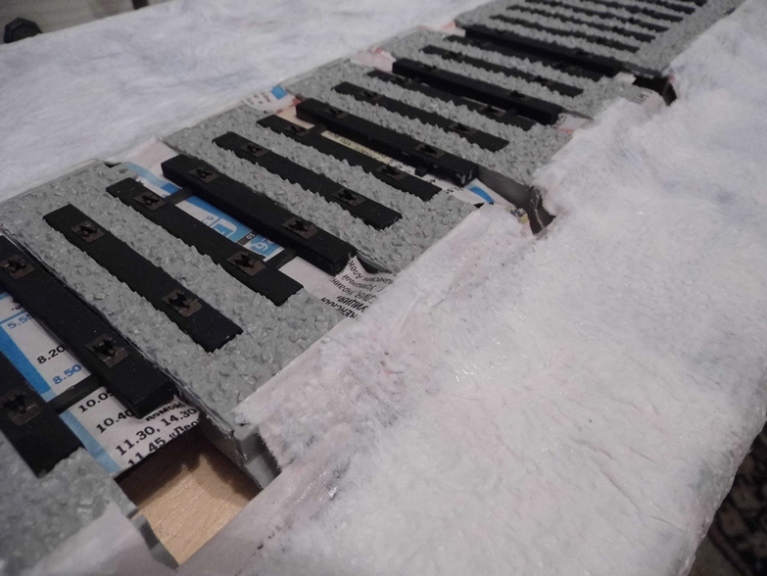 Для дальнейшего нанесения щебенки, я размешал ПВА с водой в емкости и наносил на поверхность небольшими квадратами, после чего присыпал гранулами...