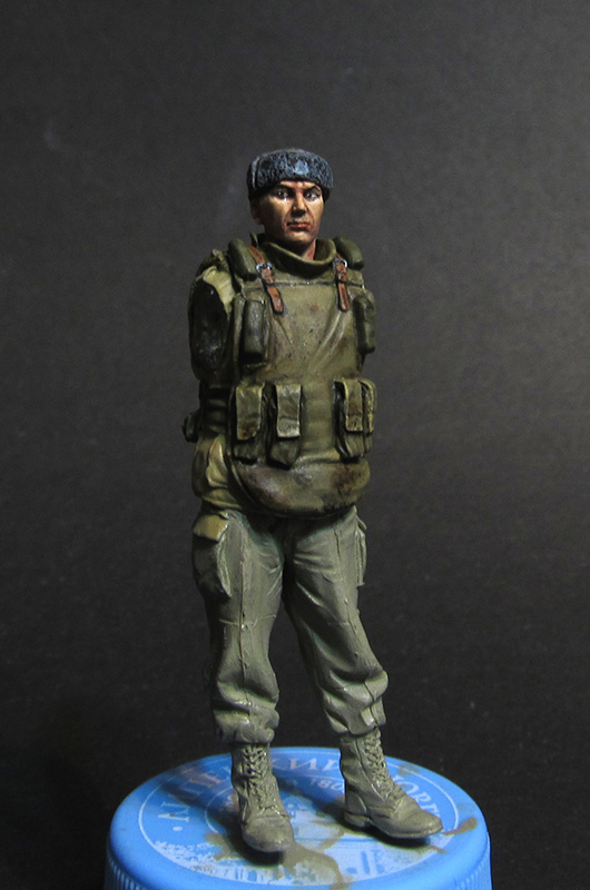 Константин Капитонов, да, это зелёный. Что здесь удивительного? Нет, если так удобней, давай назовём "защитным". На тюбиках ещё пишут "брезентовый", "оливковый". Суть одна - оттенки разные. Я просто не стал умничать. Если принципиально, то база состояла из Cam. Olive Green и US Dark Green. Если смешать эти краски, то получиться как раз тот цвет, что на верхней фуражке на твоём фото. Если этот цвет высветлить, то получиться фуражка снизу. А теперь мысленно (или в Photoshop) уменьш эту фуражку до 35-го, усиль песочную гамму (а нижняя фуражка, светлая как раз из-за преобладания жёлто-песочных оттенков) и получишь то что ты видишь на моей фигурке.
