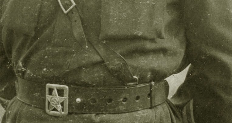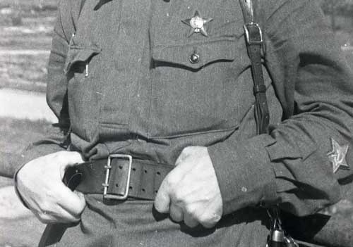 При надетом поясном ремне с портупеей нижний угол планки гимнастерки, как правило, почти "лежит" на ремне.