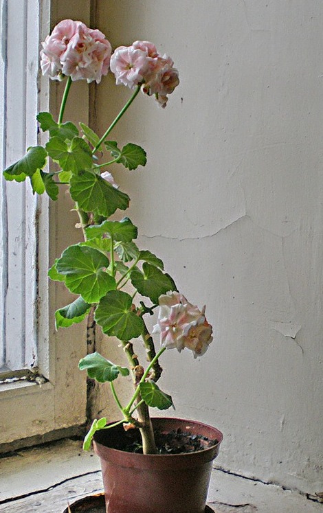 В. Астафьев "Пастух и пастушка" небольшой отрывок "... Комната убрана просто и чисто.Широкая скамья со спинкой, на ней половичок, расшитый украинским орнаментом , пол земляной, но гладко, без щелей мазаный. Среди комнаты, в деревянном ящике, - раскидистый цветок с двумя яркими бутонами. На подоконнике тоже стояли цветы в ящиках и старых горшках ...". Довольно часто упоминается в литературе да и ,очевидно, повсеместно была распространена ГЕРАНЬ. Она до сих пор частый гость в деревнях и селах.